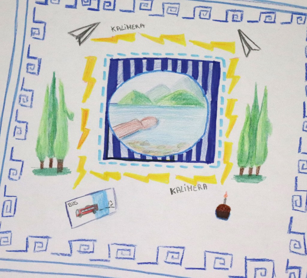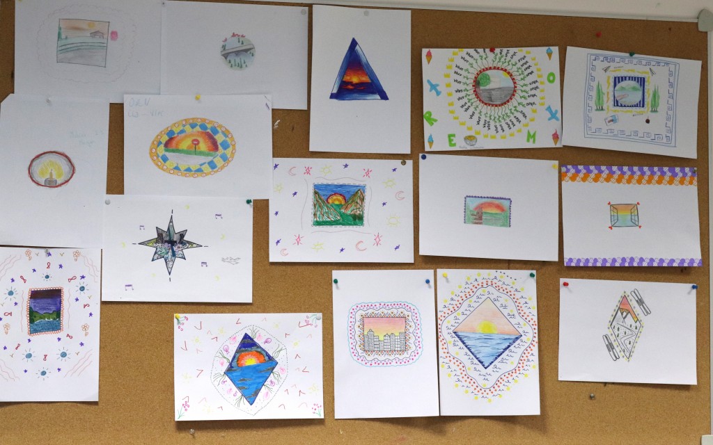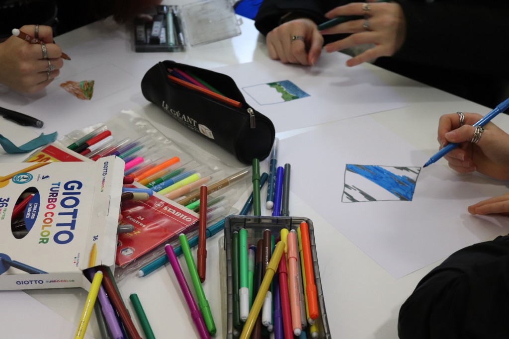 Elle leur a expliqué son travail, puis a proposé un atelier de pratique : les élèves ont dû dessiner un souvenir à l’intérieur d’un cadre (forme libre) puis réfléchir au « hors-cadre ».